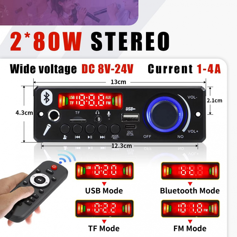 PANNELLO AMPLIFICATORE PER AUTO 2X80W