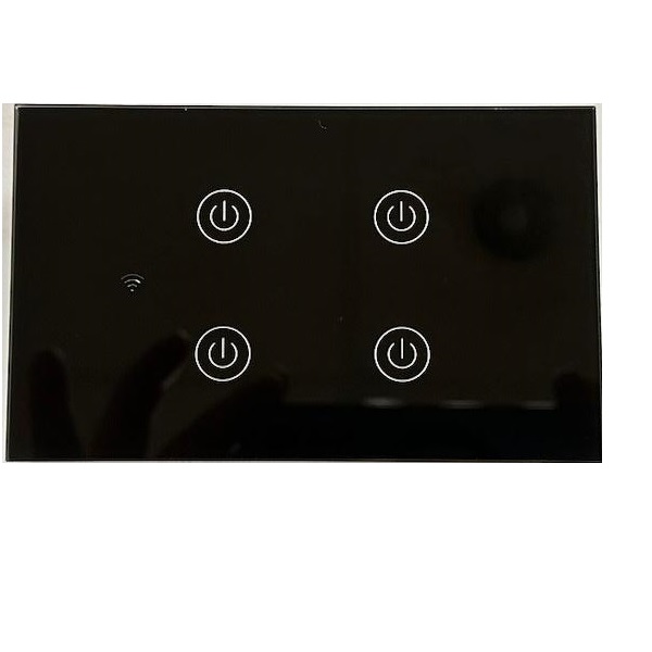 Parte anteriore di design di alta qualità, con 4 pulsanti che attivano o disattivano un determinato dispositivo, il tutto controllato dallo stesso dispositivo elettronico dal tuo cellulare o tablet .