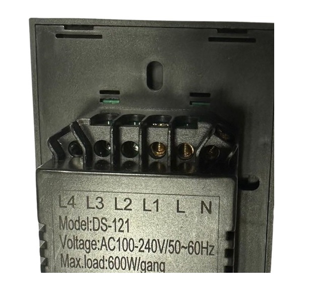 Ha un ingresso a vite 110-220VAC (N) e un'uscita 220AC (L in uscita) per ogni tasto.