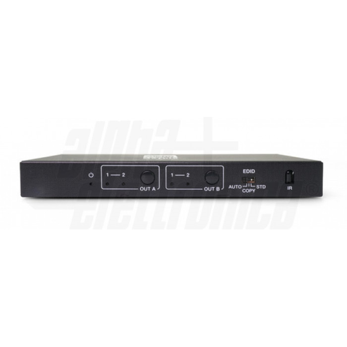 La matrice HDMI® CT384/2 permette la connessione di 2 sorgenti HDMI® a 2 uscite video come TV o monitor permettendo la scelta di qualunque ingresso per ogni uscita.