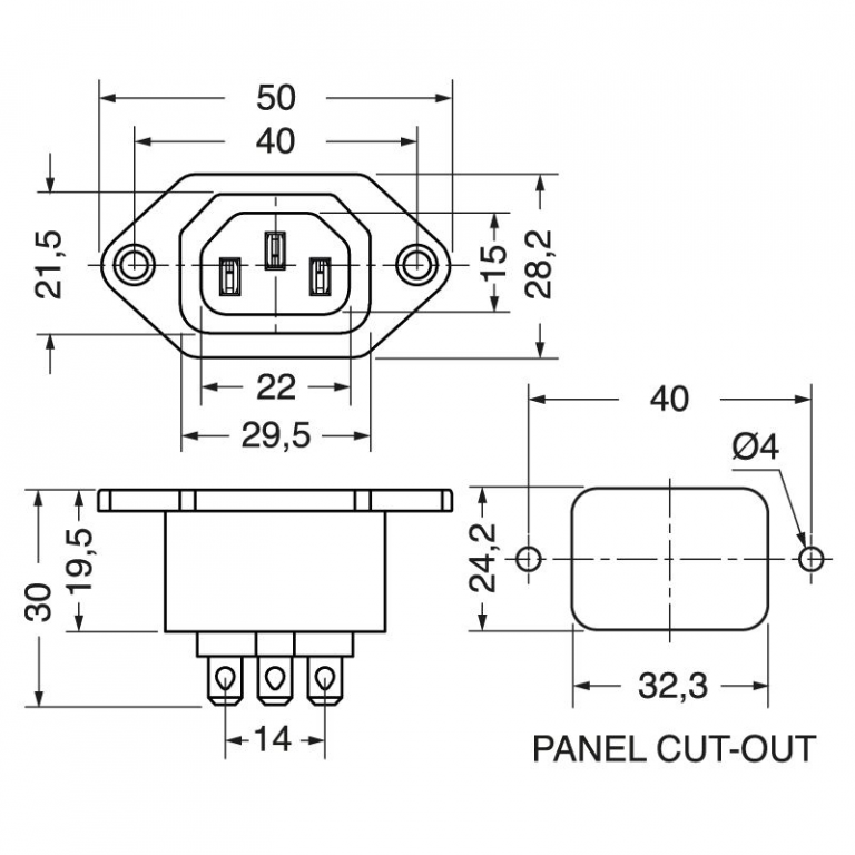 PRESA TRIPOLARE VDE IEC C13 DA PANNELLO 10A 250V