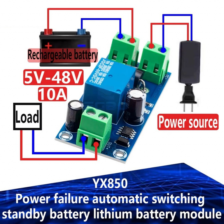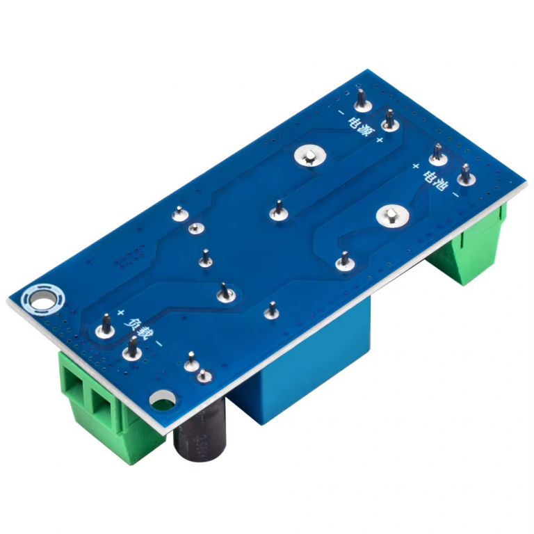 Compatto modulo di commutazione automatica che permette, collegando una tensione di ingresso compresa tra 12 e 48 VDC (12, 24, 36, 48 VDC) e una batteria con lo stesso voltaggio della tensione di ingresso, di mantenere costantemente alimentato il carico (deve avere la stessa tensione di alimentazione della tensione di ingresso) di uscita anche in caso di una improvvisa assenza della di tensione di ingresso.