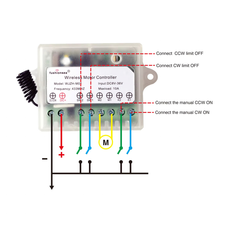 CENTRALINA RADIOCOMANDATA PER COMANDO MOTORE (AVANTI-INDIETRO) 433Mhz 8-36V 10A 60W