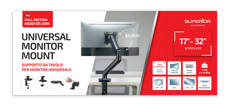 SUPPORTO UNIVERSALE PER MONITOR 17?-32? CON MONIMENTO A BRACCIO CON MOLLA ASSIATSTA