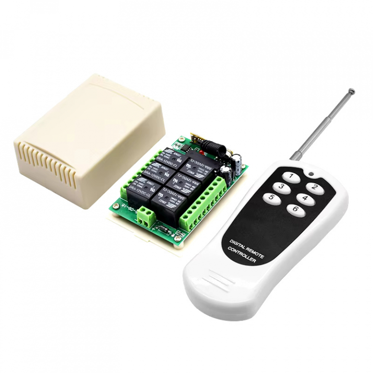 Pratico kit composto da un radiomando 6 canali e Ricevitore a 6 canali a 433 Mhz con funzionalità learning code.