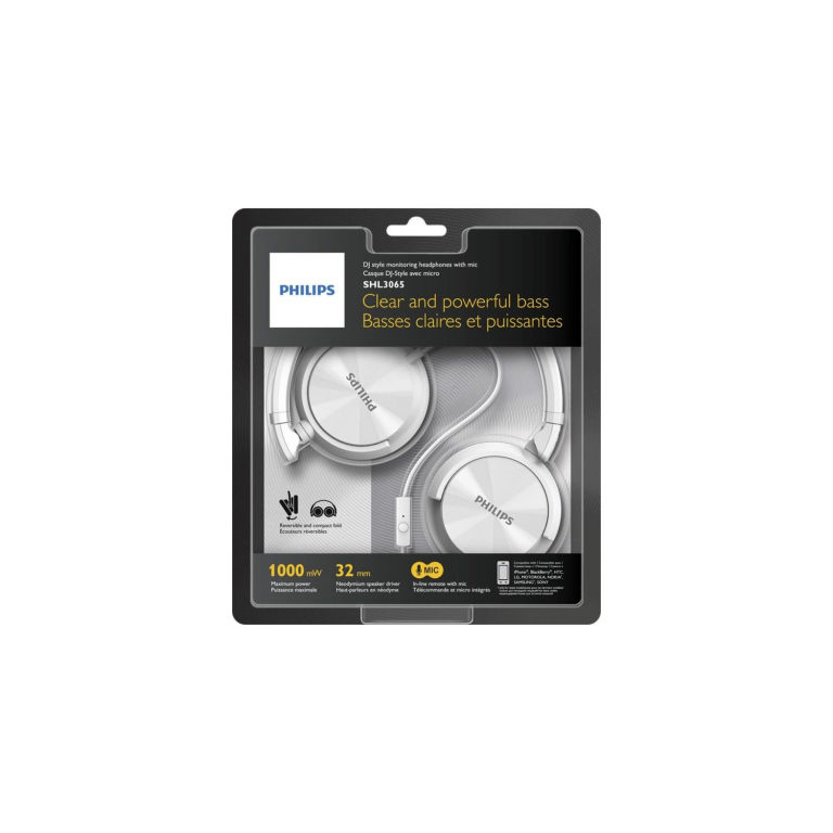CUFFIE STEREO CON MICROFONO STILE DJ CAVO 1,2MT JACK 3,5 BIANCHE PHILIPS