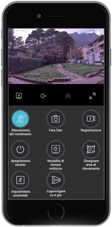 GESTIONE TRAMITE APP Gestione completa tramite APP dove possiamo vedere le immagini in tempo reale, e registrarle, oltre ad essere salvate sulla micro sd, possiamo abilitare allarmi, definire aree, scattare foto ecc.