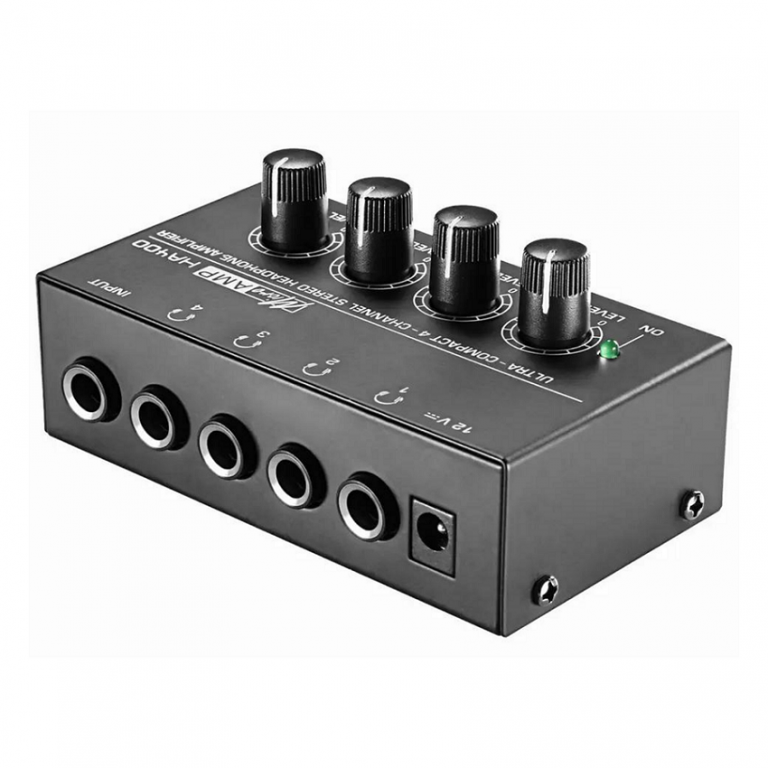 AMPLIFICATORE PER CUFFIE A BASSO RUMORE 4CH JACK 6,3 VOLUMI INDIPENDENTI 40mW 80Ohm 12VDC