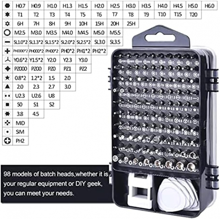 SET 115 PEZZI DI CACCIAVITI E ATTREZZI PER RIPARAZIONE SMARTPHONE E TABLET