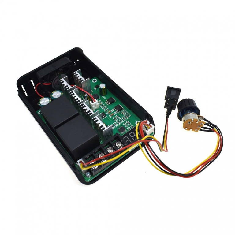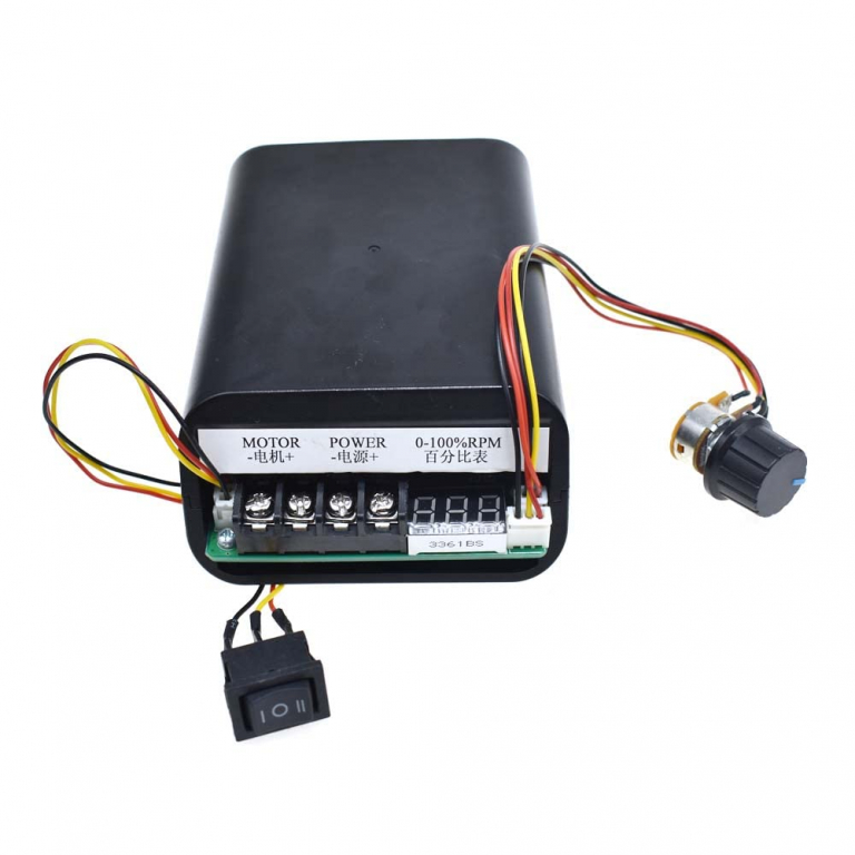 Parametri del prodotto: Tensione di ingresso: 10-55VDC Carico lineare Corrente di uscita: 60A Tipo di controllo della velocità: potenziometro (lineare) Gamma di velocità: 0-100% visibile su display Dimensioni del modulo: 125X89X46MM