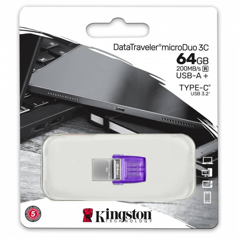 Kingston Technology DataTraveler 64GB microDuo 3C 200MB/s dual USB-A + USB-C