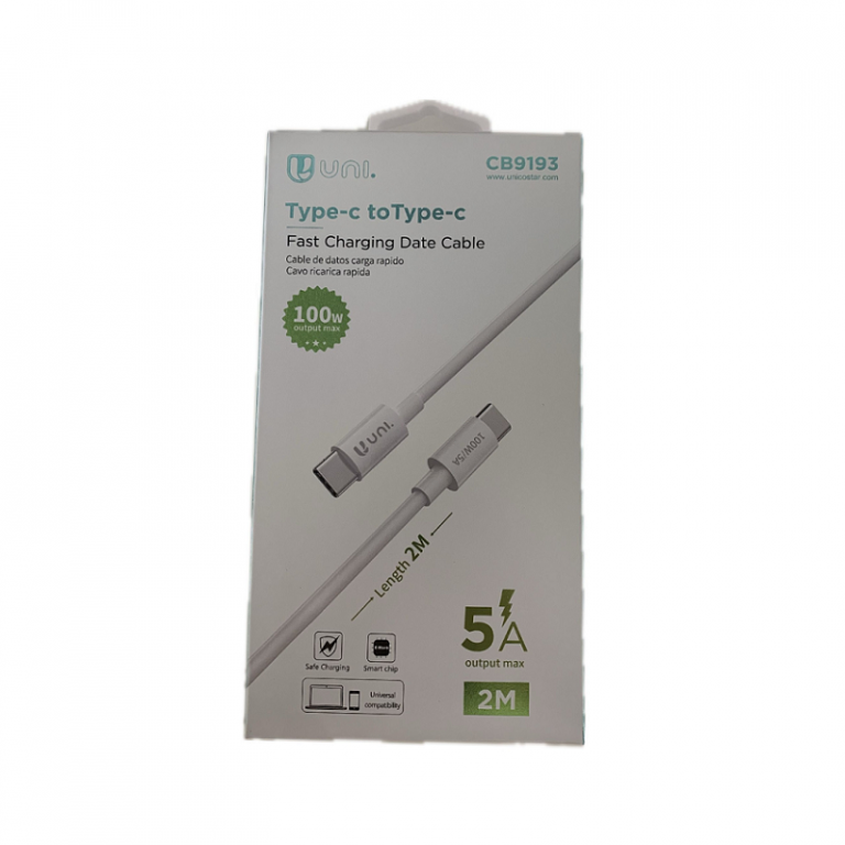 CAVO DATI E RICARICA BIANCO DA USB TYPE-C A USB TYPE-C 2MT 100W 5A MAX