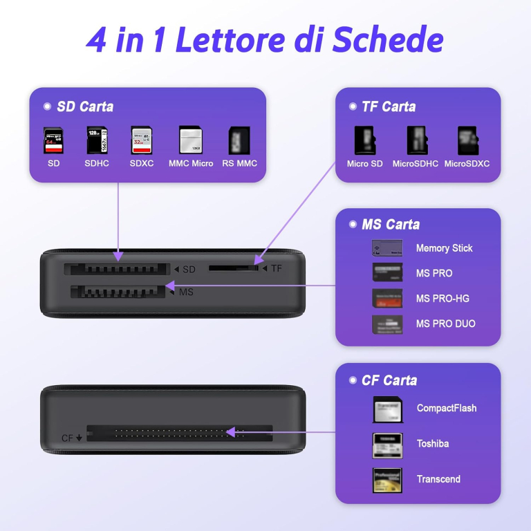 IL LETTORE PERMETTE IL TRASFERIMENTO DA E PER DISPOSITIVO E MEMORY CARD