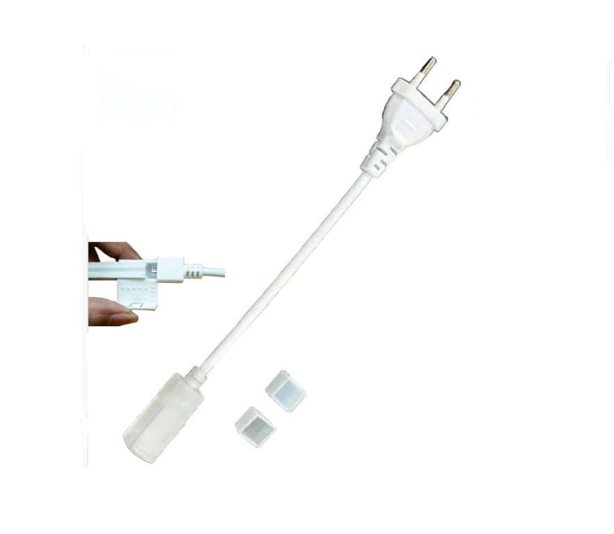Cavo di alimentazione adatto per strisce led con attacco 2PIN, dotato di spina 220VColore biancoLunghezza circa 15cmsupporta massimo 600W - 8A
