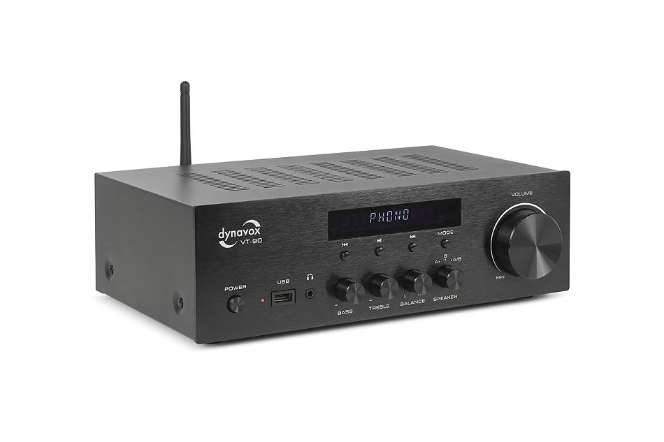 - Il VT-90 è un amplificatore stereo compatto di alta qualità per il collegamento di un'ampia gamma di sorgenti di segnale (2 analogiche, di cui 1 per giradischi con sistema MM, digitale ottica e coassiale, USB e Bluetooth v5.0).