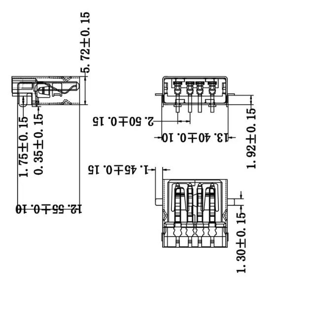PRESA USB/A 4 PIN 90° SMD SALDARE