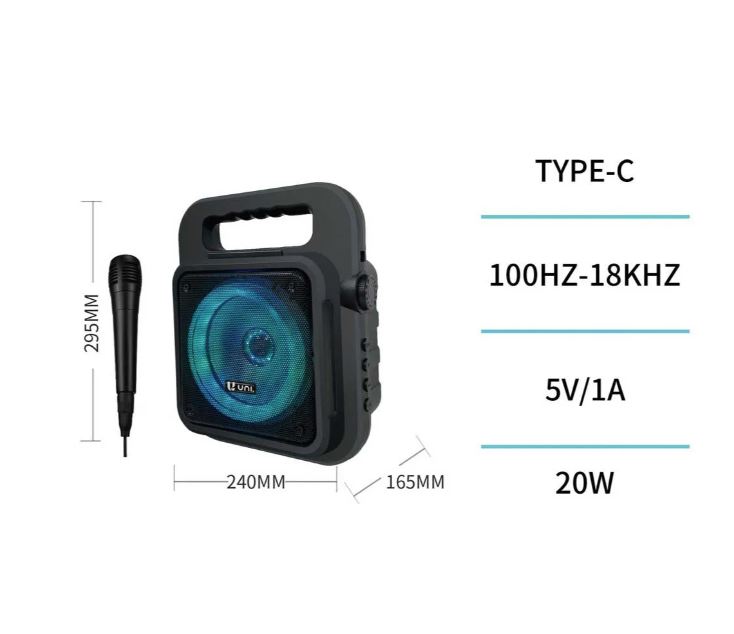 Dotato di bluetooth, radio FM, presa aux (3,5mm), presa MIC (6,35mm), una presa USB