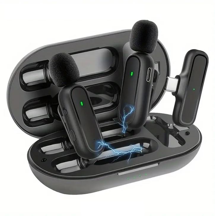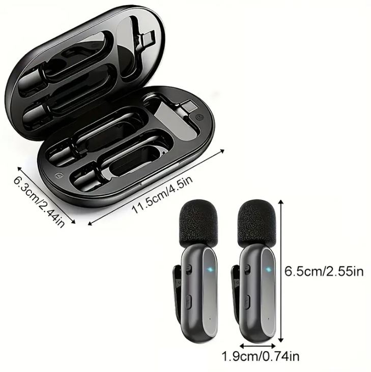 Coppia di microfoni wireless 2.4Ghz connettore USB TYPE-C con custodia di ricarica power bank.