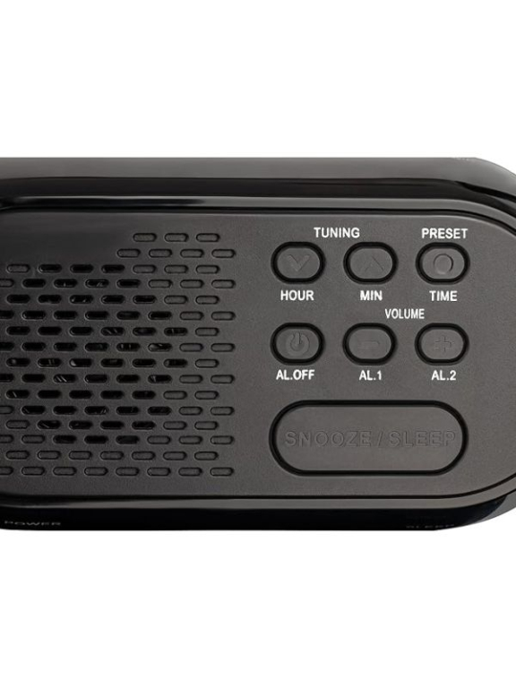 Orologio con doppia sveglia tramite suoneria o radio, e sleep timer (autospegnimento)