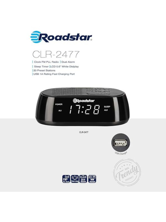 RADIOSVEGLIA DIGITALE FM PLL OROLOGIO DISPLAY 0,6" USB PER RICARICA NERA ROADSTAR