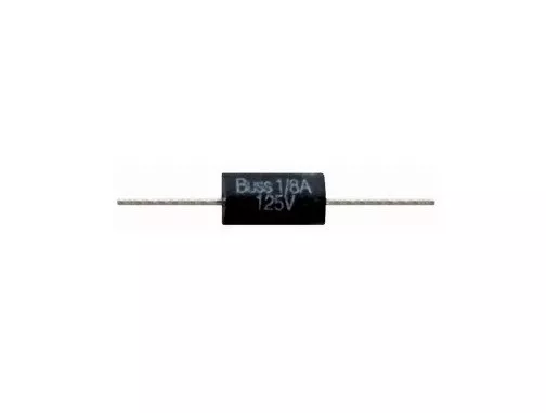 Picofusibile PFF 257 rapido / Contenitore cilindrico diam. 2,3x8mm. con 2 reofori assiali da 32mm. diam.0,60mm. / per montaggio su circ. stampato / Tensione: 125VAC/DC / Capacita' di rottura: AC 50A - DC 300A / Corpo in materiale termoplastico / Contatti in rame stagnato / Codice di omologazione: Bussmann MCRW / Norme di riferimento: UL248-14. Corrente nominale: 1A