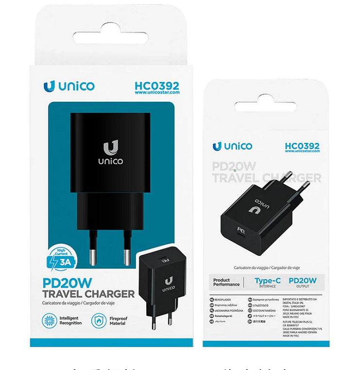 CARICATORE DA MURO 1 PRESA USB TYPE-C 5VDC 3A PD 20W NERO