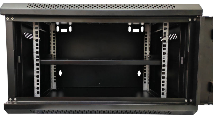 Armadio rack da parete da 6 unità (6U), ideale per l’alloggiamento ordinato e sicuro di dispositivi di rete, server, switch, router, DVR e apparati IT. Design compatto, robusto e ventilato, con porta frontale in vetro temperato e chiusura con chiave.