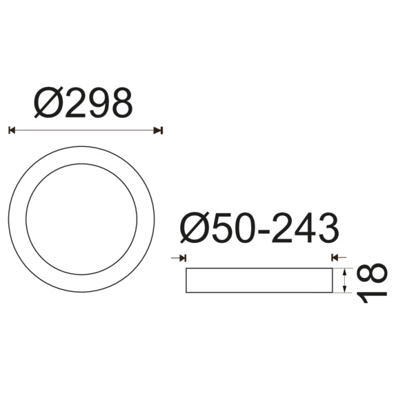 PANNELLO LED DA INCASSO TONDO 298mm H18mm FORO 50-243mm 120° IP20 24W 1900LM 3000K/4000K/6500K 220VAC