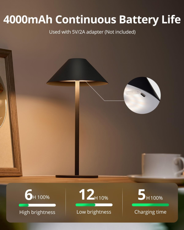 LAMPADA LED DA TAVOLO A BATTERIA IN METALLO 3000K/4000K/6500K TOUCH DIMMERABILE VARI COLORI