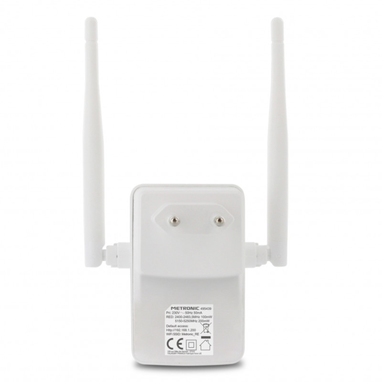 Il ripetitore Wi-Fi 1200 METRONIC potenzia il segnale Wi-Fi aumentando velocità e copertura per raggiungere le stanze più lontane dal modem. Questo ripetitore permette di raggiungere una velocità di connessione fino a 1200Mbit/s per guardare film HD in streaming in soggiorno o giocare online in giardino, senza perdita di prestazioni. E' sufficiente posizionare il ripetitore in un punto coperto dalla rete wi-fi esistente per consentire la diffusione in zone in cui il segnale non è presente o arriva con difficoltà. Ideale per la mansarda, la taverna, il garage, il giardino, … Per avere il segnale Wi-Fi ovunque lo si desideri. Si tratta di dispositivo dual-band (2,4 GHz o 5 GHz) che permette di godere della connessione migliore senza interruzioni. È, inoltre, possibile controllare la qualità del segnale grazie ai led integrati. Compatibile con tutti i modem e device con connessione Wi-Fi, ad esempio smartphone, tablet, computer portatili, chromecast, fire TV, ecc… Installazione facilitata con tasto WPS
