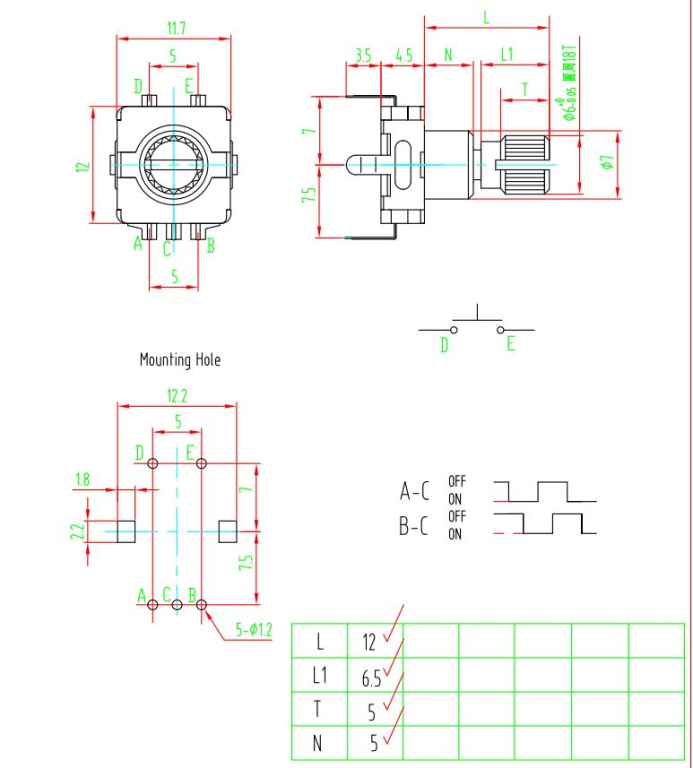 ENCODER ROTATIVO INCREMENTALE 30 PASSI 15imp/giro 11mm ALBERINO 6mm 5VDC 5mA