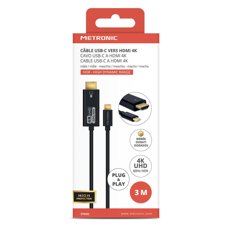 CAVO USB TYPE-C TO HDMI 4K 60Hz HDR UNIDIREZIONALE CONTATTI DORATI 3MT