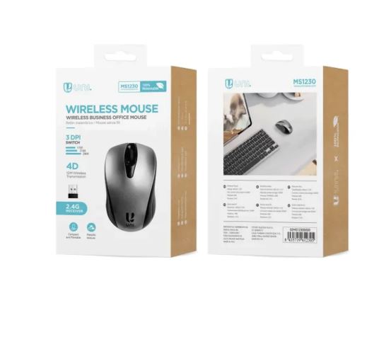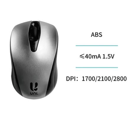 Il mouse ha una struttura in metallo nero e grigio, una presa comoda, il classico funzionamento a quattro pulsanti e la tecnologia wireless 2.4G, che è plug-and-play e consente di risparmiare spazio.