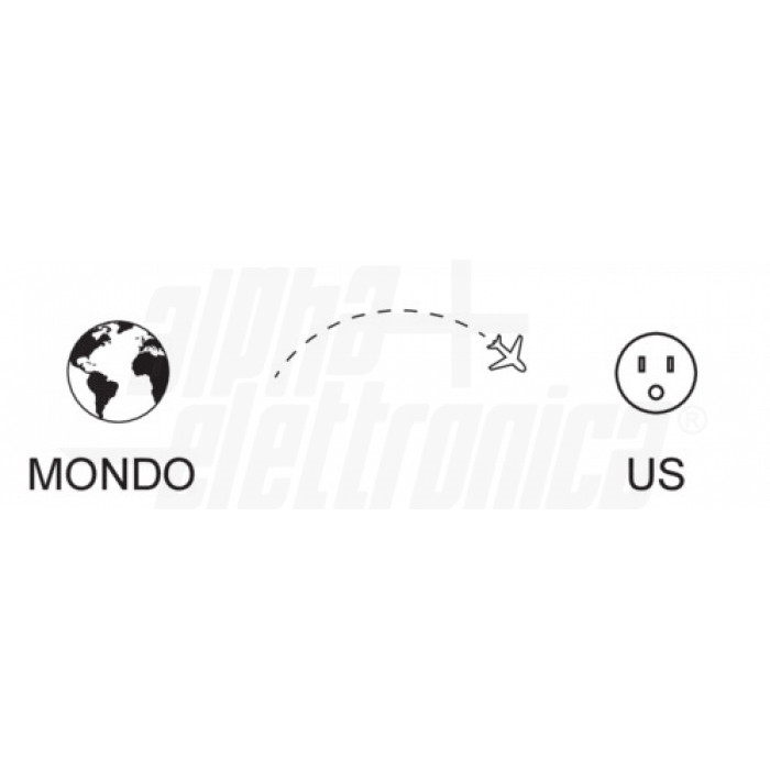 Adattatore universale da viaggio a spina America, utilizzabile in più di 150 paesi nel mondo per alimentare tutti i dispositivi elettronici. In particolare utilizzabile in Europa, Regno Unito, Stati Uniti e Australia.