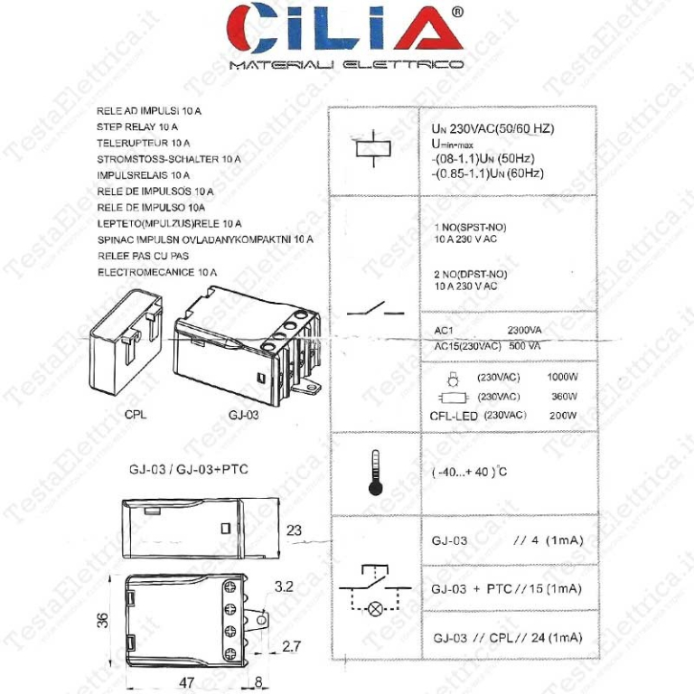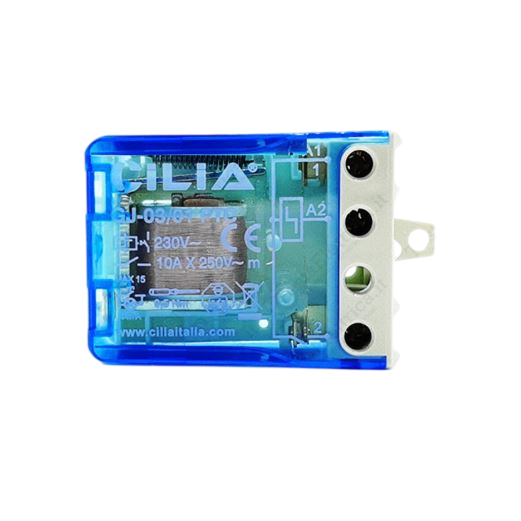 Relè ad impulsi della marca CILIA, utilizzato per il comando di luci o altri dispositivi elettrici, comunemente impiegato in domotica e quadri elettrici.