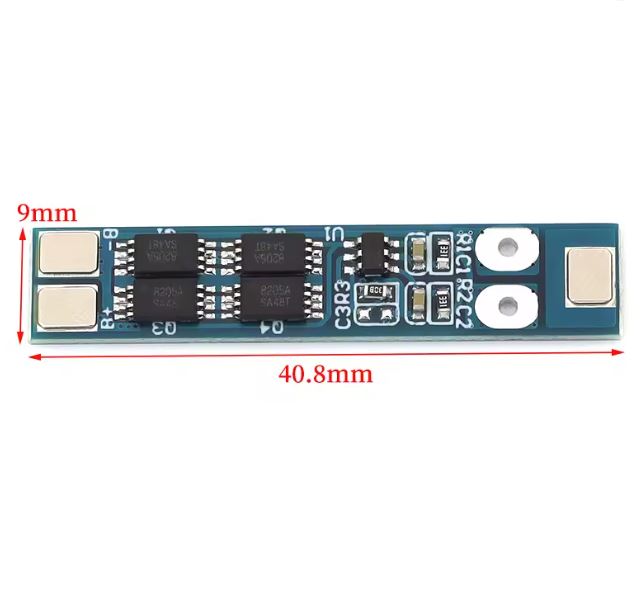Progettata per gestire la carica e la scarica sicura di 2 celle Li-Ion o Li-Po collegate in serie.