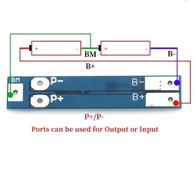 BMS 2S SCHEDA DI PROTEZIONE DUALMOS PER 2 BATTERIE AL LITIO MAX 8,4V 8A