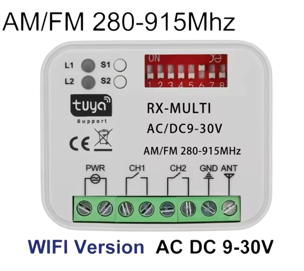 Questo ricevitore può funzionare a 9V-30VAC-VDC. Tuttavia è necessario modificare i micropulsanti dipswitch in base alla tensione utilizzata. Se l'alimentazione è maggiore di 24 V, abbassare i pin 2 e 3; abbassare i pin 2 e 3 se l'alimentazione è inferiore a 24V.