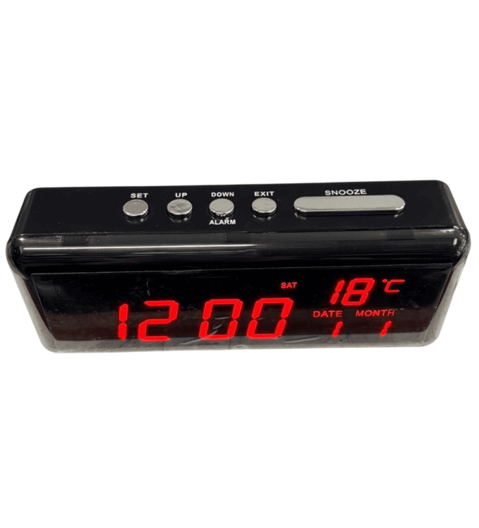 Orologio sveglia digitale di colore nero e led rossi.