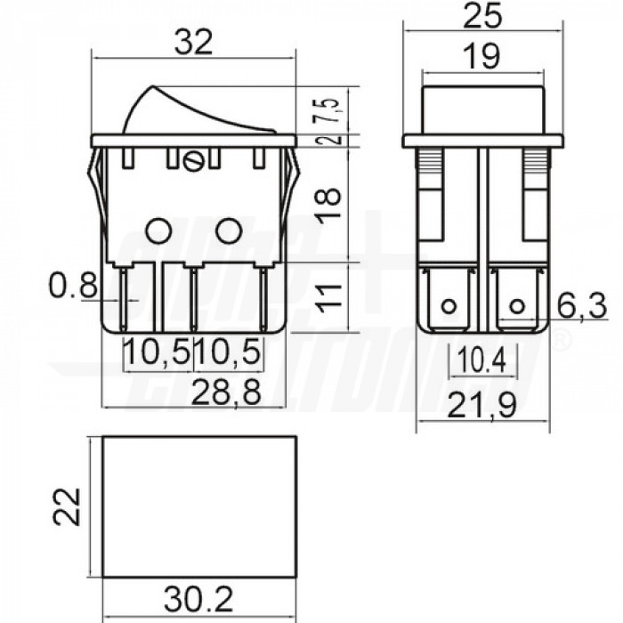 Tipi contatti DPDT Foro fissaggio 22mm x 30.2mm Attuatore Plastica Portata 15A@250Vac, 20A@125Vac Serigrafia Nessuna Tipologia Deviatore Stato dei contatti ON/ON Tipo terminale faston 6,3 N. terminali 6 Terminali 6 terminali faston 6,3 Luminoso no