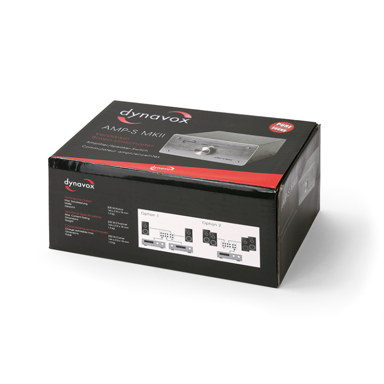 L'AMP-S MKII consente di commutare tra due coppie di altoparlanti quando si utilizza un amplificatore hi-fi. Viceversa, questo interruttore consente anche di commutare tra due diversi amplificatori hi-fi e una coppia di altoparlanti.