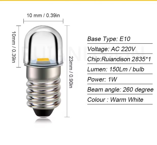 LAMPADINA LED E10 3000K 150LM 1W 220VAC