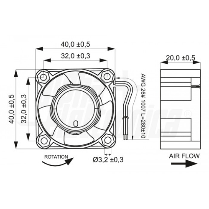 VENTOLA 24VDC 40x40x20mm IN PLASTICA CUSCINETTO A SFERA 2 FILI
