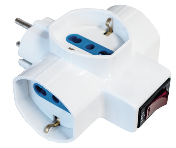ADATTATORE TRIPLA PRESA BIPASSO+SCHUKO SPINA SCHUKO INTERUTTORE 220VAC 16A 3500W BIANCO