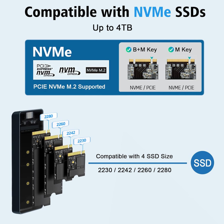 COMPATIBILE CON IL FORMATO NVMe E CON LE DIMENSIONI 2230, 2242, 2260, 2280