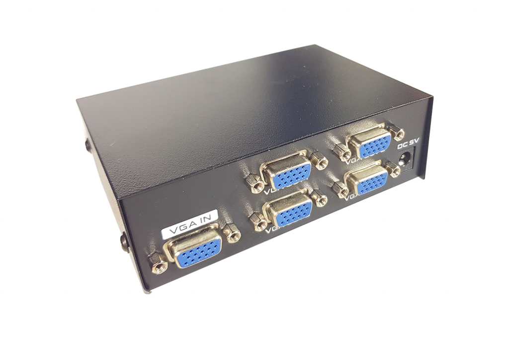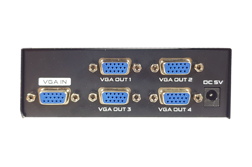 Splitter VGA per visualizzare una singola sorgente VGA su 4 monitor VGA, proiettori o TV. Completamente compatibile con le specifiche analogiche VGA. Permette di duplicare il segnale video in ingresso su 4 uscite con una risoluzione fino a 1920 x 1440 e una banda passante fino a 200MHz.