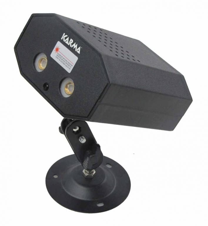Di piccole dimensioni, copre un raggio d'azione molto ampio proiettando centinaia di raggi laser i ogni direzione e in continuo movimento. Nella confezione sono inclusi sia la basetta di sostegno snodabile e regolabile a piacimento, sia il comando ad infrarossi per l'accensione e spegnimento a distanza. Non manca neppure l'alimentatore esterno. Opera anche a tempo di musica grazie ad un piccolo microfono posizionato nella parte inferiore.