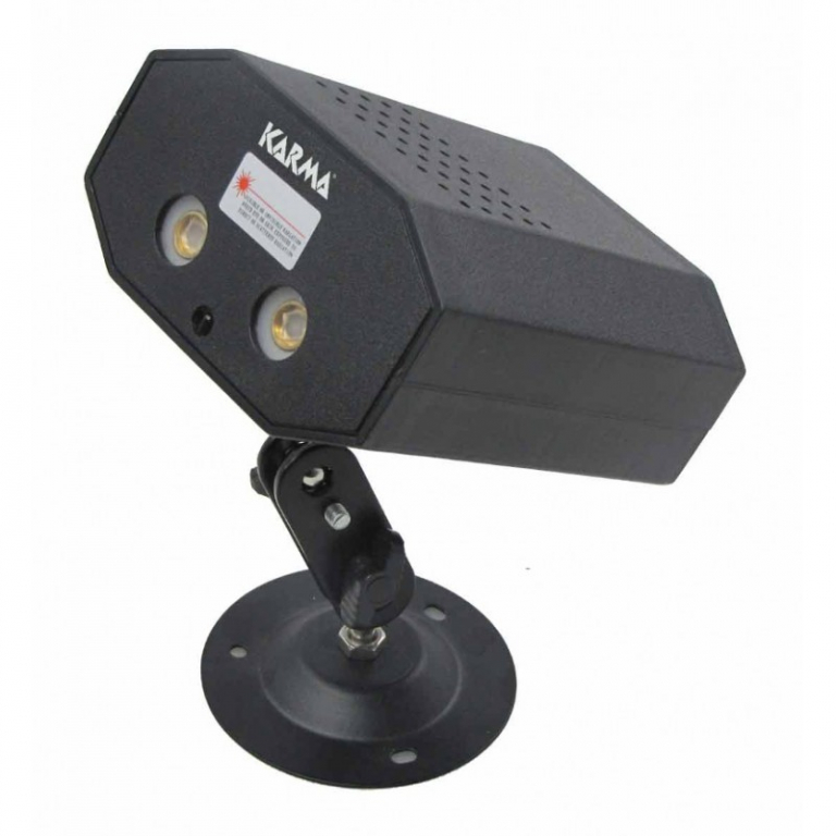 Tra i laser più richiesti attualmente in commercio, Karma LASER 120 è in grado di produrre un grande effetto scenico grazie al doppio laser (rosso 50mW + verde 30mW) di cui è dotato ed ai 15 differenti pattern che può creare. Le dimensioni contenute non influiscono sul raggio di azione, molto ampio e particolareggiato. Nella confezione sono compresi una basetta di sostegno snodabile e regolabile, il telecomando ad infrarossi per l'accensione e lo spegnimento a distanza, l'alimentatore esterno. E' in grado di operare non solamente in modalità auto, ma anche in modalità sound controlled grazie al microfono posizionato sulla parte inferiore del faro.