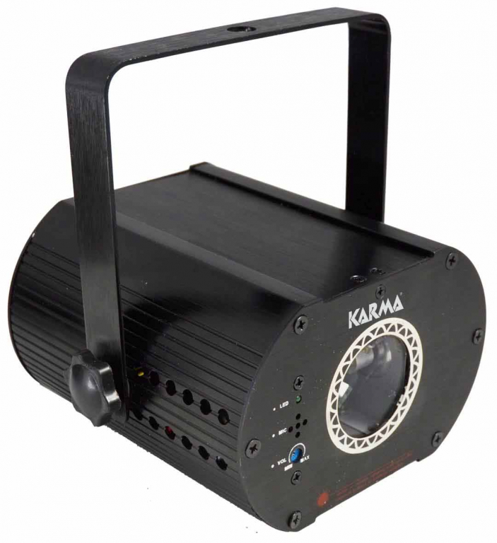 Laser rosso con diodo da 100mW ed interfaccia DMX per il collegamento ad impianti professionali. Sul retro è presente una presa di alimentazione per il collegamento a cascata di più unità. Grazie al circuito interno, è in grado di riprodurre fino a 25 figure proiettate in automatico, seguendo il ritmo musicale o controllate singolarmente tramite centralina DMX (non inclusa). La staffa ne permette il poszionamento ovunque. La sensibilità del microfono è regolabile direttamente dal pannello frontale. In base alla norma europea EN 60825-1 e all'ordinanza italiana del 16 luglio 1998, l'uso dei laser di classe superiore a 2 deve essere limitato a usi professionali specifici ed effettuato da personale specializzato. Vi suggeriamo di informarvi sulle restrizioni e le leggi specifiche del vostro paese in materia di utilizzo dei laser.
