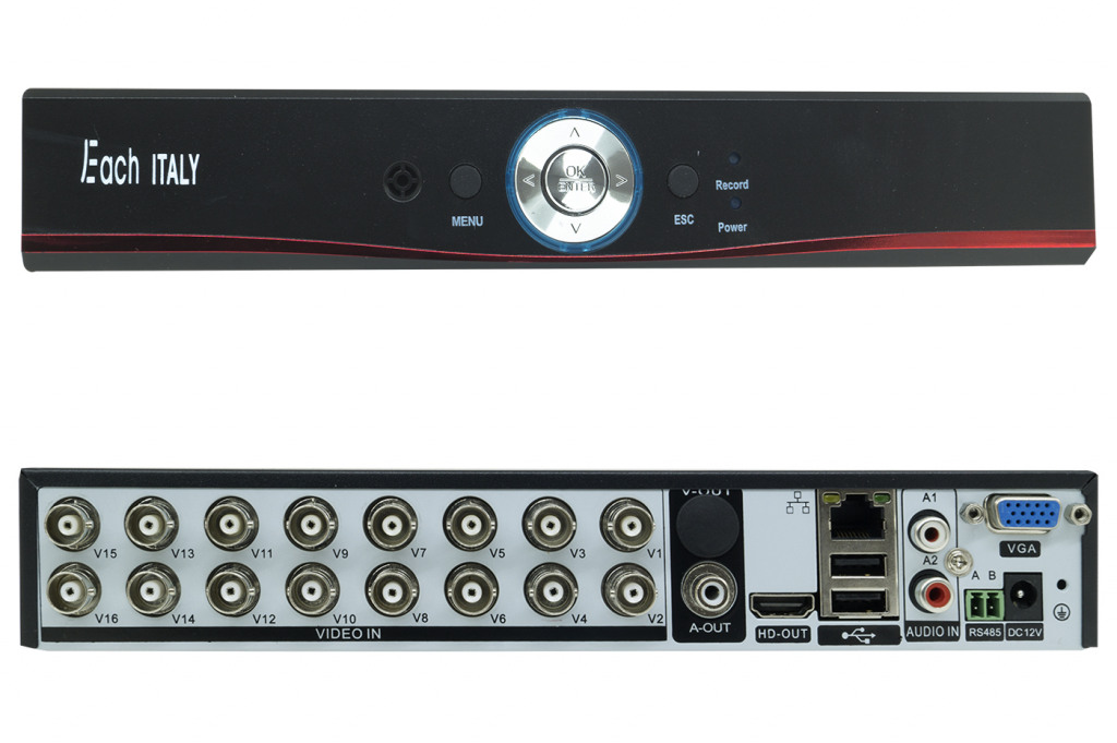 DVR NVR AHD(Analogic High Definition) 16 canali, ideale per la videosorveglianza, supporta hd sata (NON incluso), collegamento lan, due porte usb per controllo tramite mouse e backup su dispositivi di memoria usb, un'uscita video HDMI ed una VGA. AHD (Analog High Definition) è un sistema di trasmissione video HD su cavo coassiale analogico che permette la trasmissione in HD a lunghe distanze ma ad un costo molto contenuto per soddisfare i requisiti di ogni tipo di installazione, dalla più semplice alla più complessa. il dispositivo dispone della funzione "COMBO" e quindi permette di utilizzare contemporaneamente sia telecamera BNC che telecamere IP con la particolarità che in questa modalità il DVR gestirà 8 BNC (1080n) e 8 IP (960P). In alternativa è possibile usare la sola funzione BNC (MAX 16 CAM 1080N) o IP (MAX 16 CAM 960P, 8 1080P + 8 960P, MAX 4 CAM 3M o MAX 4 CAM 5M ).